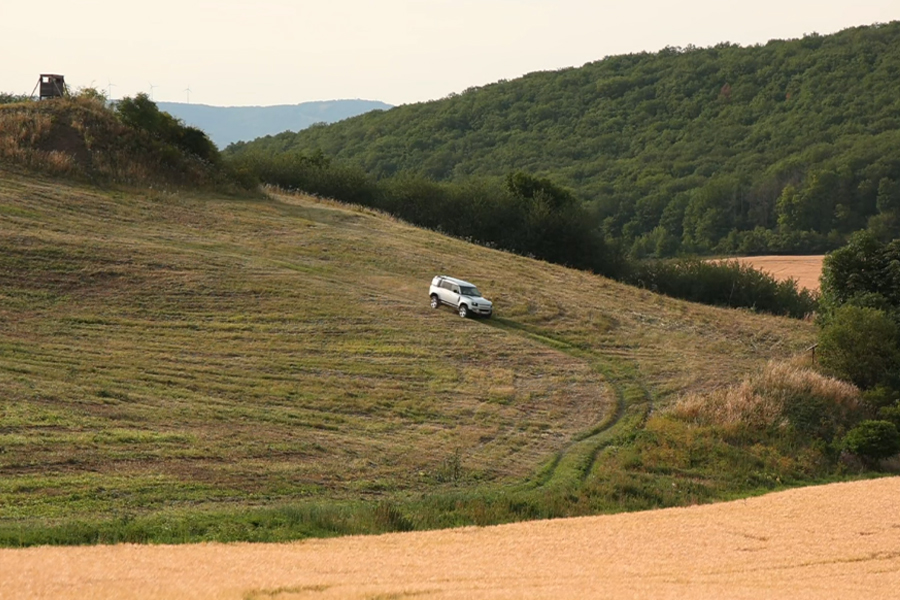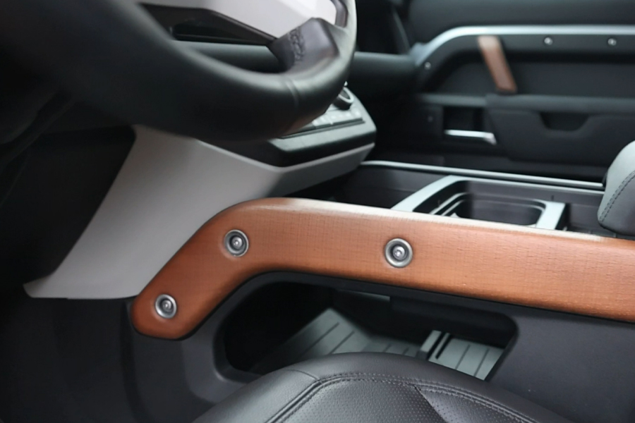 Jen málokterý automobil vzbuzuje naživo takový respekt. Kombinace hranatých tvarů a bezmála dvoumetrové výšky působí impozantně. Naše konkrétní auto má navíc spoustu zajímavých detailů. Třeba nášlapy na kapotě nebo boční box, kam si můžete poskládat vybavení pro své putování krajinou. Pro dobrodruhy toho ale Defender nabízí mnohem víc. V originálním příslušenství si můžete vybrat třeba žebřík a mohutný střešní nosič pro rezervní kola nebo stan na přespání. Střecha je pro tyto případy dimenzovaná na statické zatížení až 300 kg a ztížení při jízdě až 130 kg.