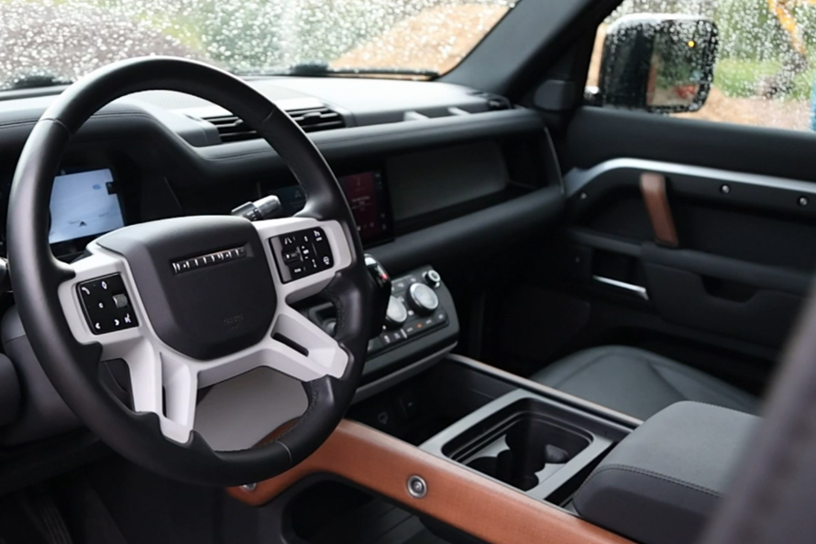Díky adaptivním tlumičům dokáže Defender rozpoznat, na jakém povrchu zrovna jede a podle toho je buď tužší nebo měkčí. Na hladké silnici se podvozek utáhne a vůz snese i razantní průjezdy zatáček. Pokud je povrch silnice rozbitý, překvapí Defender kultivovaným a příjemným pohlcováním všech nerovností. Když sjedete z asfaltky na polní cestu, zjistíte, že i tady je vůz ve svém živlu a správně vytušíte, že tím jeho schopnosti zdaleka nekončí.