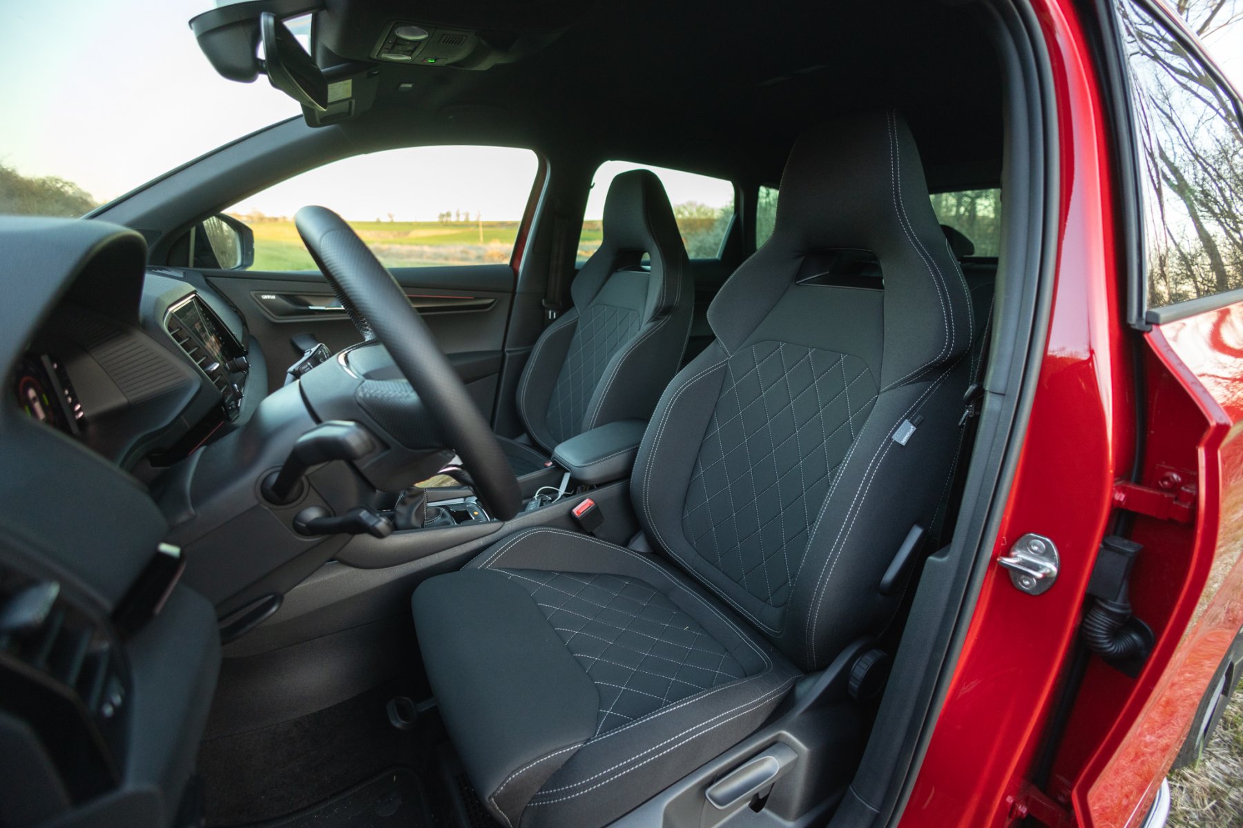 Co dále v interiéru potěší? Přiměřené množství odkládacích schránek, přihrádek, šuplíků, tak aby se uvnitř jednoduše lépe žilo. A protože je to Škodovka, na poměry dané kategorie vždycky trošičku větší auto, tak musíme zmínit i její obvyklou praktičnost.